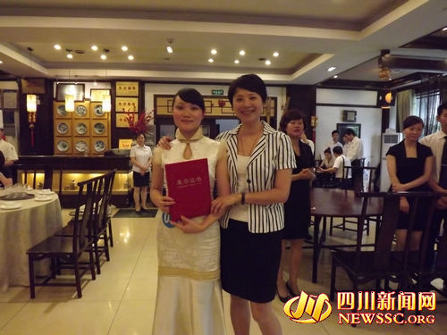 蜀兰大酒店总经理刘瑛(右)和员工在一起