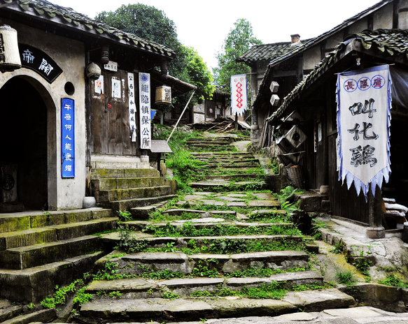 它是西南地区独一无二、完整体现民国时期小镇生活风貌的古镇。从宏伟的寨门子进入龙隐镇,沿着青
